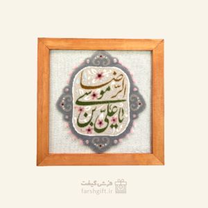 تابلو فرش علی بن موسی الرضا علیه السلام یک فرش نوشته زیبا از نام مبارک «رضا علیه السلام» است که